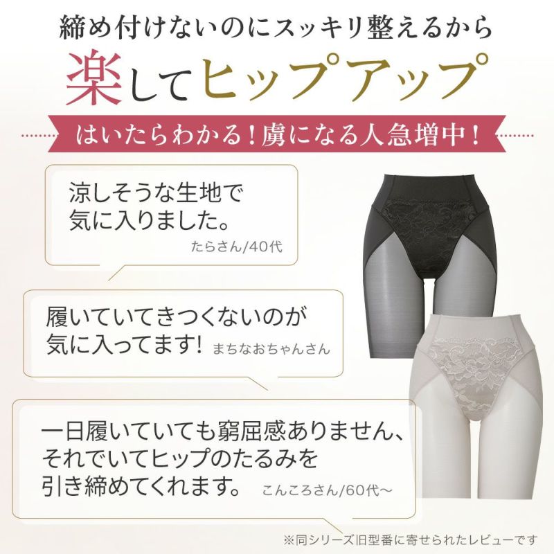 ヒップと太もも全体をすっぽりと包み込み、すっきり整える補整ガードルです。華やかなオリジナルの新柄ストレッチレースを使用し、優雅な色合いが美しいデザイン性の高い人気シリーズです。