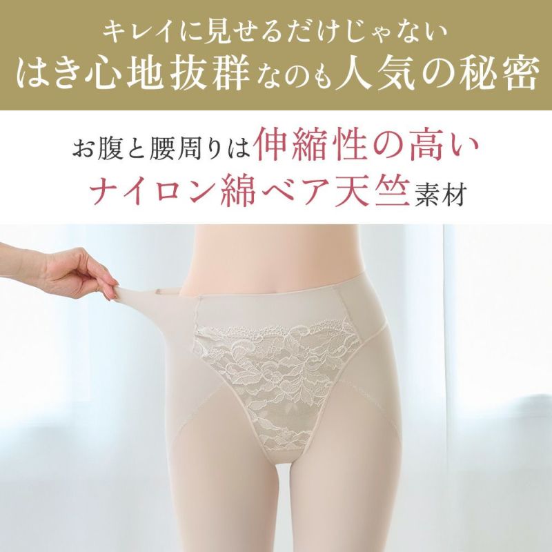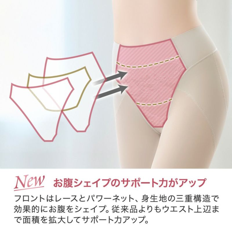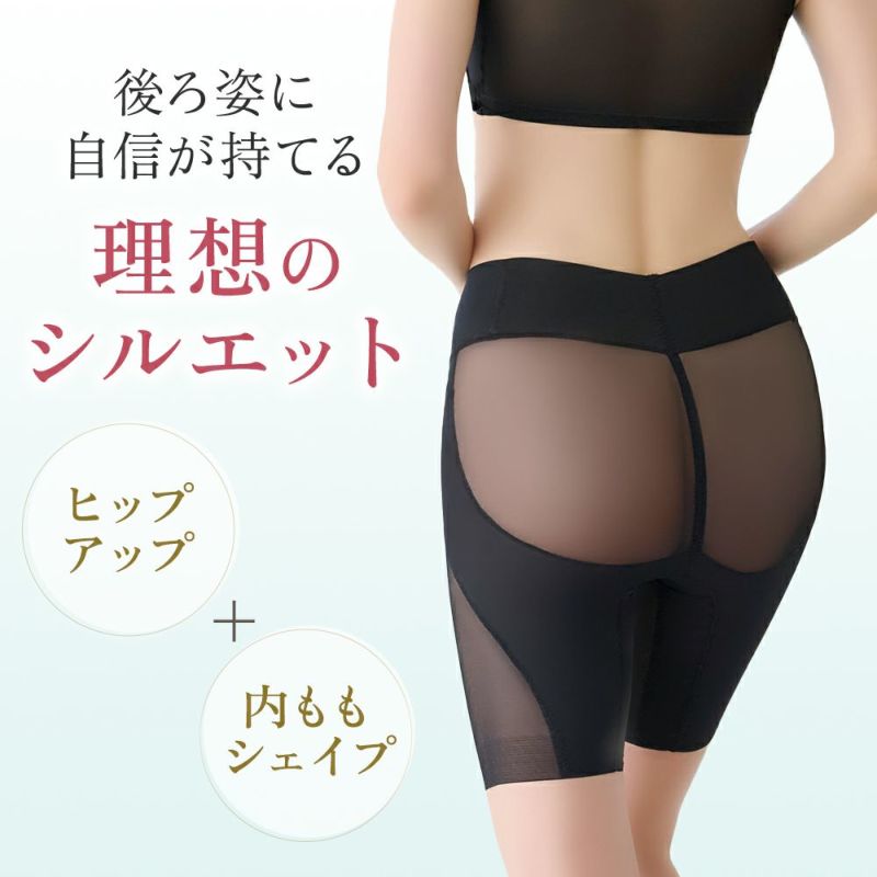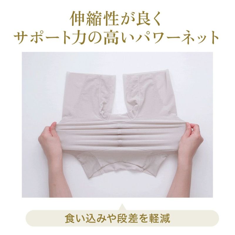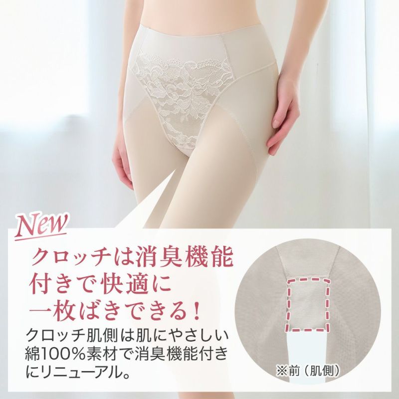 QVC商品名:BRNYピース 華やかレーシーガードル ヒップと太もも全体をすっぽりと包み込み、すっきり整える補整ガードルです。華やかなオリジナルの新柄ストレッチレースを使用し、優雅な色合いが美しいデザイン性の高い人気シリーズです。 ヒップ中心に施したテープはヒップを下から引き上げ、ギャザーが綺麗な丸みををキープします。太ももまで流れたお尻のお肉を包み込み、お尻と太ももの境目を作り、ヒップラインを美しく見せます。また、パワーネットで裏打ちした幅広のヒップアップパネルがヒップと太ももの境界線を作ります。 フロントはレースと身生地の間にパワーネットを内蔵した三重構造でお腹をシェイプします。ウエスト部分は身生地を折り返した二重仕様でテープを使用せず、面でフィットし食い込みにくく楽なはき心地です。 レッグ部分は、補整効果の高いヘムパワーネットを使用しています。伸縮性の高いヘムパワーネットはメッシュ素材で通気性も良く、体の動きにもフィットしやすいです。 足口はフラットなヘム仕様で、食い込みや段差になりにくく、アウターに響きにくくなっています。足口のヘム端はずれ上がりや巻き上がりを軽減します。 クロッチの肌側には肌当たりが優しい綿100%天竺を使用し優しい肌当たりです。消臭機能付きにリニューアルされ、汗の臭いがこもりがちなデリケートゾーンも安心です。また、吸水性・速乾性に優れ、接触冷感機能付きでサラっと快適なはき心地です。