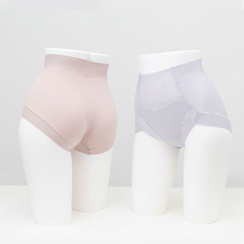QVC商品名:BRNYピース 綿さらタッチナチュラルフィット綿混ショーツ おへそが隠れるぐらいのはき込み丈で、ウエストからヒップ下まですっぽりと包み込む補正ショーツです。お尻と太ももの境目をしっかり作り、はくだけで美しいヒップラインを作ります。 ヒップは生地一枚仕様にすることで下着のラインが響きにくく、お尻の形に沿った立体パターンでお尻の丸みを潰さず包み込みます。縫製の接ぎ部分は、極力薄く仕上がるフラットな縫製仕様のため優しいはき心地です。 フロント上辺はレース+シアーパワーネットを折り返した三重仕様。下辺は身生地+シアーパワーネットの二重仕様にすることで程良い伸縮性で面でお腹を押さえます。ウエストはゴム不使用で食い込みにくく楽なはき心地です。 身生地は360度によく伸びる優しい肌当たりの綿混素材"ナイロン綿ベア天竺"を使用。柔らかなフィット感で体の動きに馴染みやすく、毛玉になりにくいのも魅力です。また、接触冷感機能に加えて吸汗性と速乾性があるので、汗をかいても快適な着心地をキープします。 足口はそけい部を圧迫しにくいクロス仕様にすることで、可動域が増え圧迫感を軽減しています。クロッチの肌側には優しい肌ざわりで消臭機能付きのナイロン綿ベア天竺を使用しているので、汗の臭いがこもりがちなデリケートゾーンも安心です。洗濯ネームは転写タイプで、お肌が敏感な方でも不快感なく着用していただけます。 フロント上辺とそけい部にリーフ柄の光沢レースをたっぷりあしらい、春先を告げる新緑をイメージした爽やかなデザインです。