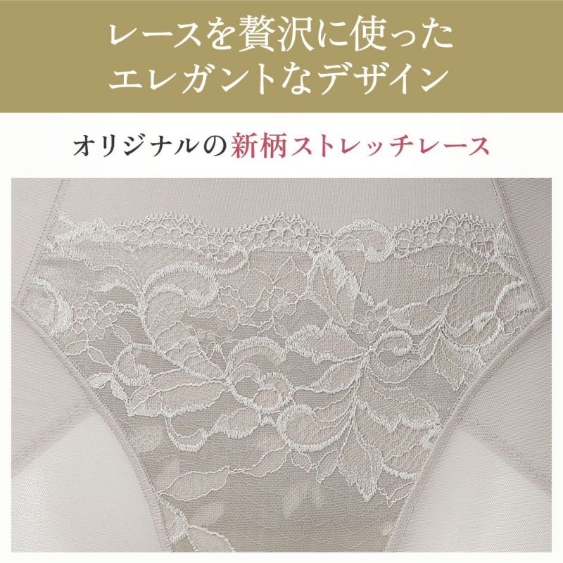 ヒップと太もも全体をすっぽりと包み込み、すっきり整える補整ガードルです。華やかなオリジナルの新柄ストレッチレースを使用し、優雅な色合いが美しいデザイン性の高い人気シリーズです。