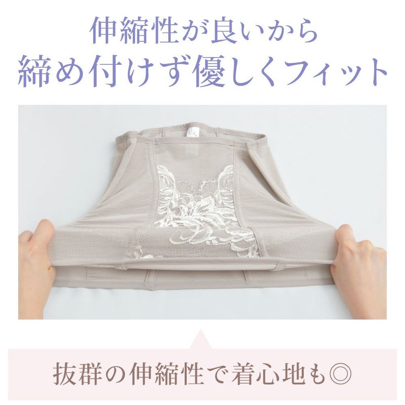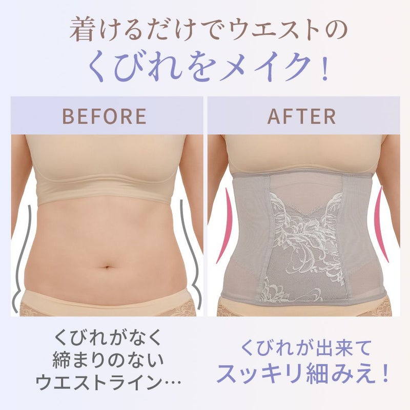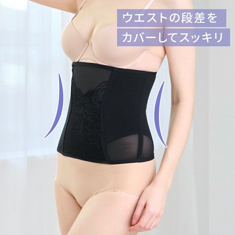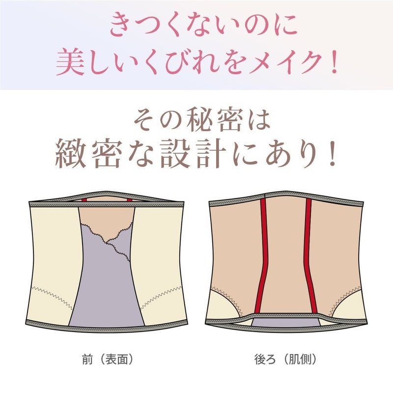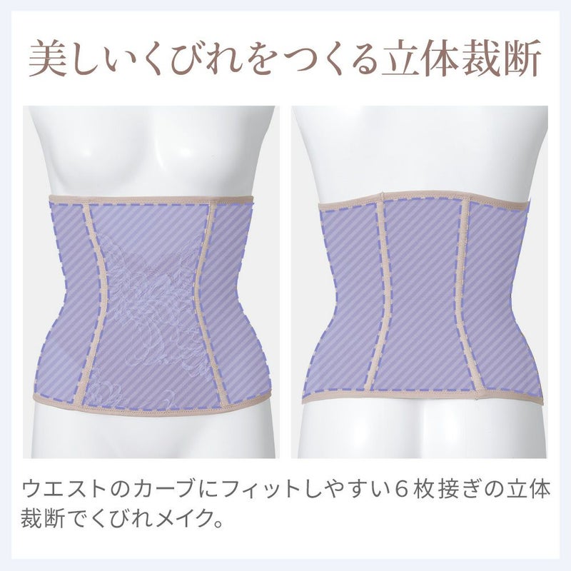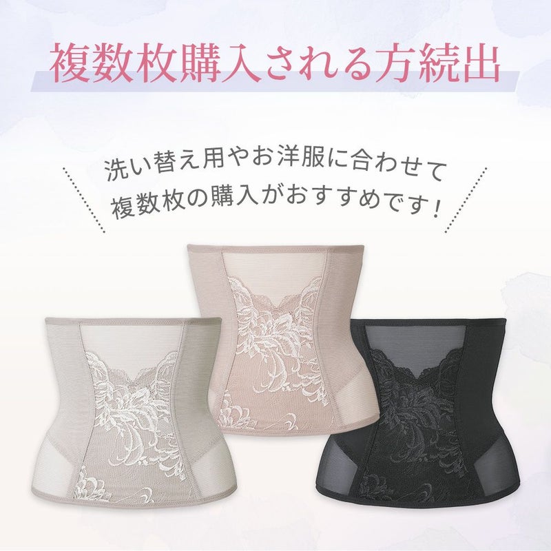 QVC商品名:BRNYピース すらっと細みえウエストニッパー ラクな着け心地でウエストラインをすっきり整える、ウエストニッパーです。 薄手で伸縮性に優れた素材を使用し、ホックが無く着脱がしやすくなっています。 フロントにはボタニカルガーデンをイメージした落下板ストレッチレースを使用し、エレガントで華やかなデザインです。 ウエストのカーブには、フィットしやすい六枚接ぎの立体裁断でくびれをメイク。裾はやや広めの立体パターンでずれ上がりや食い込みを軽減します。サイドとバックに入れた四本のコイルボーンがウエストを支えてくびれをキープしながら、動いた時の身生地のヨレを軽減します。ボーンカバーは肌当たりの良いフレンチパイル素材を使用し、約5mm幅のボーンで安定感があります。 お腹部分はレース一重とパワーネット二重の三枚重ねでお腹を押さえます。二枚のパワーネットは縦伸びと横伸びに分けているので、程よく伸びを抑えつつ苦しくない仕様です。また、みぞおち部分はパワーネット一重で圧迫感を軽減し、ブラのアンダーに当たらないよう前身頃の上辺は横一直線仕様になっています。 脇パーツはパワーネット二枚重ねで、ウエストの段差をなめらかにしてくびれラインを実現。背中はパワーネット二重にすることで面で支え、背骨の両サイドにボーンを一本ずつ設置し、背中をシャキッとさせます。 身生地はハイストレッチパワーのパワーネットを使用し、ウエストを面でしっかりと支えます。 接触冷感機能付きで通気性があるため、快適な着心地でオールシーズン着用可能です。