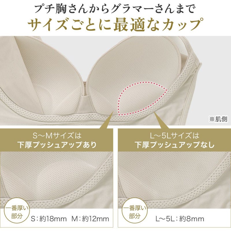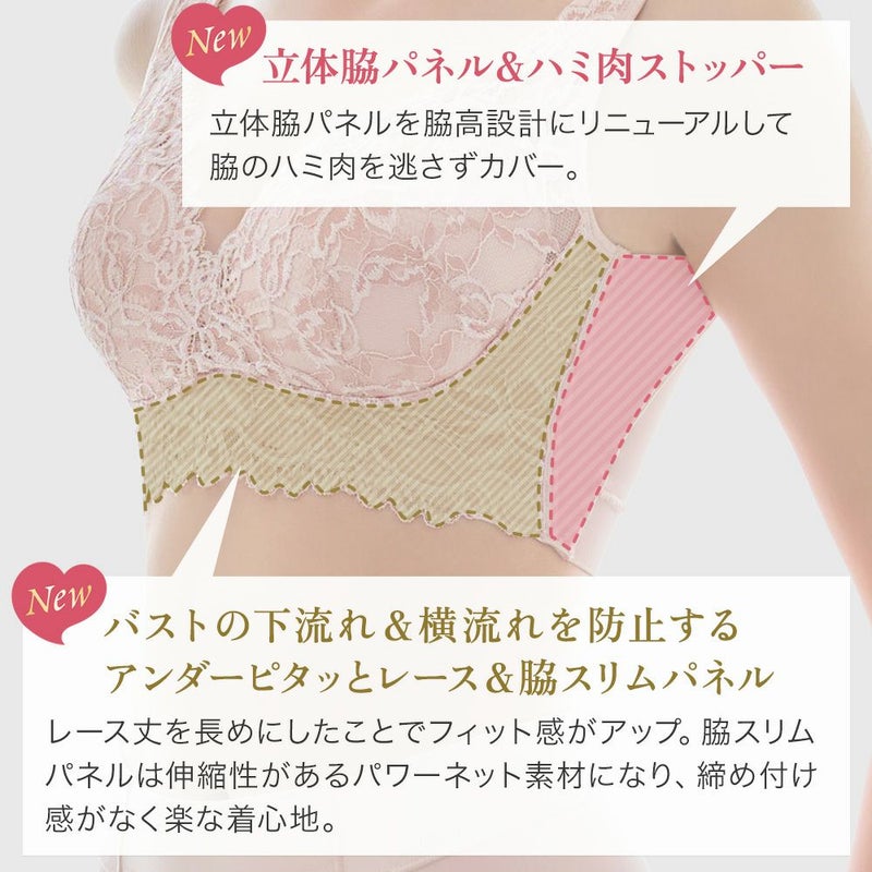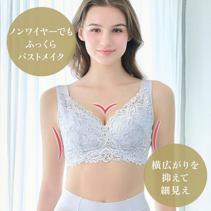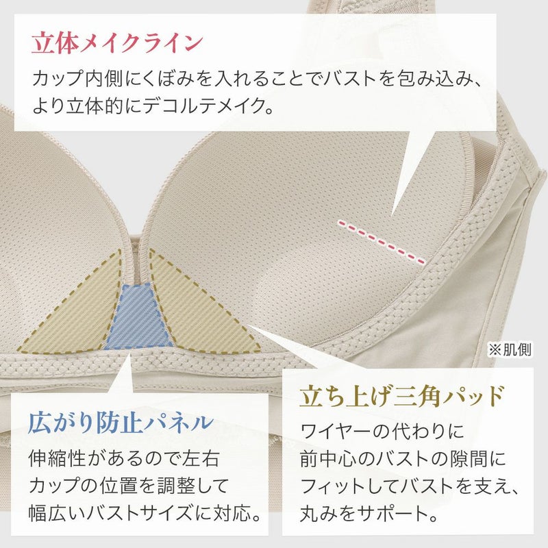 ノンワイヤーなのにバストをしっかり寄せて、キレイなバストラインに整える