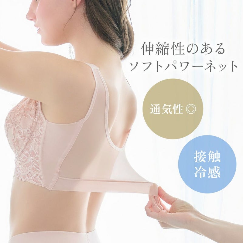 QVC商品名:BRNYピース ビューティフルレースハートフルカップブラ25 [レースは選べる2タイプ] 楽な着心地で美しくバストメイクする、人気シリーズの補正ノンワイヤーブラです。華やかな落下板ストレッチレースと、フラットな生地調ストレッチレースの2タイプにリニューアル。 オリジナルのハートカップはソフトなウレタン素材を使用し、バストに馴染みやすく軽い着け心地です。 カップ上辺のハートラインが食い込みを軽減し、カップ内側のくぼみがバストを包み込み、立体的にデコルテメイクします。バージスラインに沿ってバストを包み込む引き上げループは、カップくりから肩まで続き、ショルダー全体でバストを引き上げます。表カップはバストを中心に寄せて脇をすっきりと整える引き寄せカシュクールデザインで、様々なバストサイズにフィットします。カップ横の「引き上げアーチパネル」がカップ内側に内蔵されたことで、アウターにラインが響きにくくなっています。 脇部分は従来の「立体脇パネル」を脇高設計にしたことで脇のはみ肉を逃さずカバー。カップ台の脇部分は伸縮性のあるパワーネット素材を挟み込み、締め付け感がなく楽な着心地です 身生地は伸縮性に優れたソフトパワーネットで、締め付け過ぎずソフトで柔らかな風合いです。 前カップ台の肌側とショルダーは、なめらかな肌触りの2wayトリコット素材に、カップの肌側はメッシュ素材にリニューアル。吸汗速乾性に優れているので汗を素早く吸ってサラッとした着心地です。さらに接触冷感機能で、肌に触れた瞬間にひんやりして汗ばむ季節も快適です。 レースはイングリッシュガーデンをイメージした華やかな落下板ストレッチレースと、服に響きにくいエレガントな生地調ストレッチレースの2タイプ。 やさしい着心地とフィット感で普段使いやナイトブラとしてもお使いいただけます。 落下板レース:DB125101/商品名 :ビューティフルレースハートフルカップブラ25 スムースレース:DB125102/商品名 :スムースレースハートフルカップブラ25