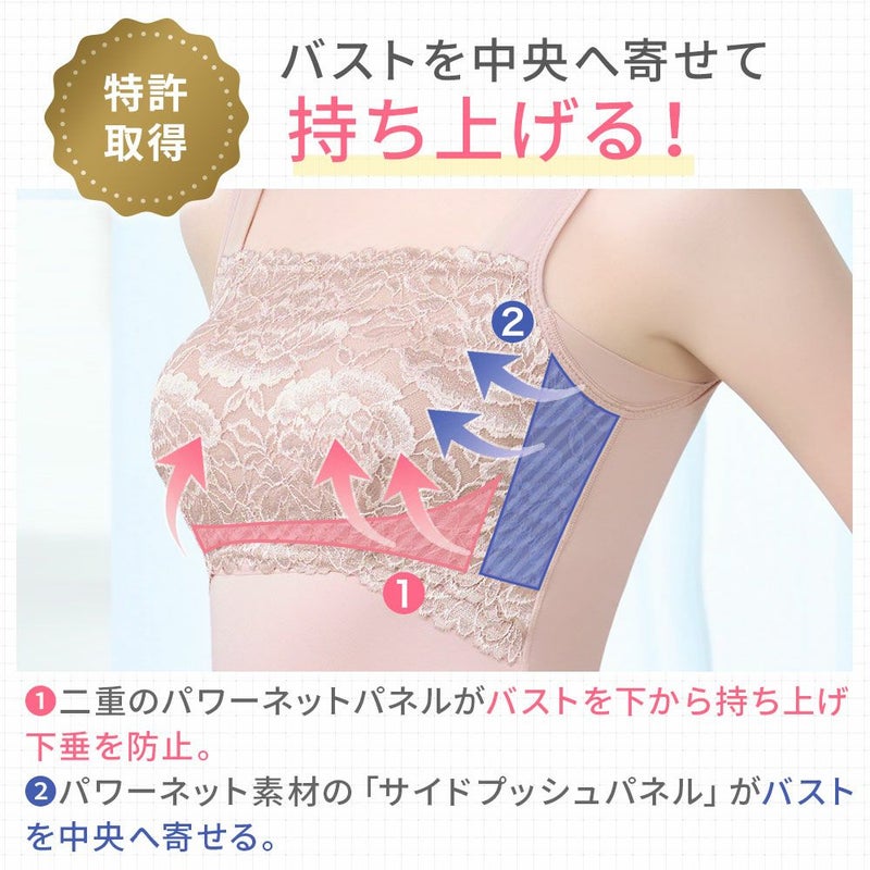ノンワイヤーなのにバストをしっかり寄せて、キレイなバストラインに整える