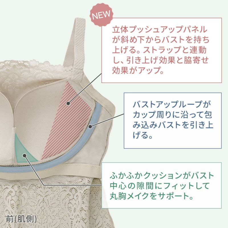 ノンワイヤーなのにバストをしっかり寄せて、キレイなバストラインに整える