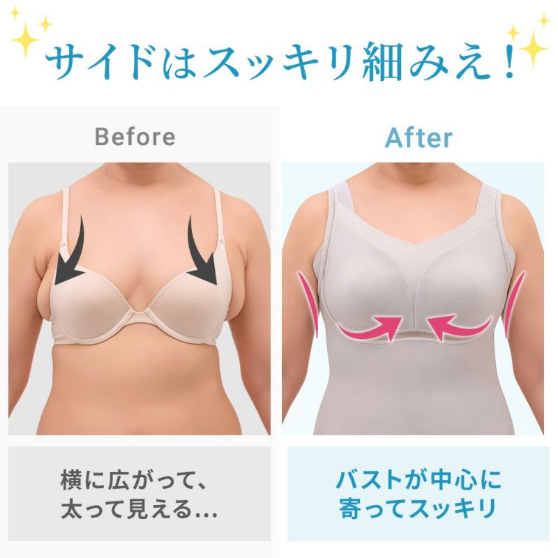 ノンワイヤーなのにバストをしっかり寄せて、キレイなバストラインに整える