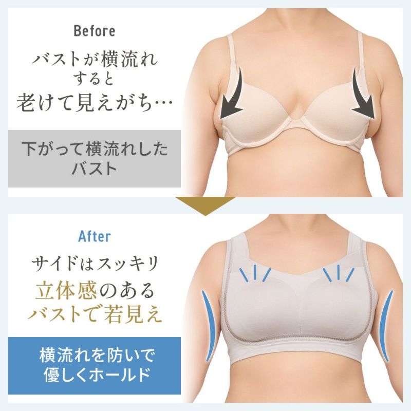 着ていることを忘れるような快適さを実現した補正ブラ。日中はボディメイクの補整ブラとして 夜はバストケア用として、ご希望に合わせた使用ができます。
