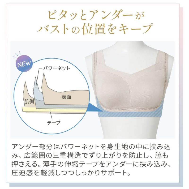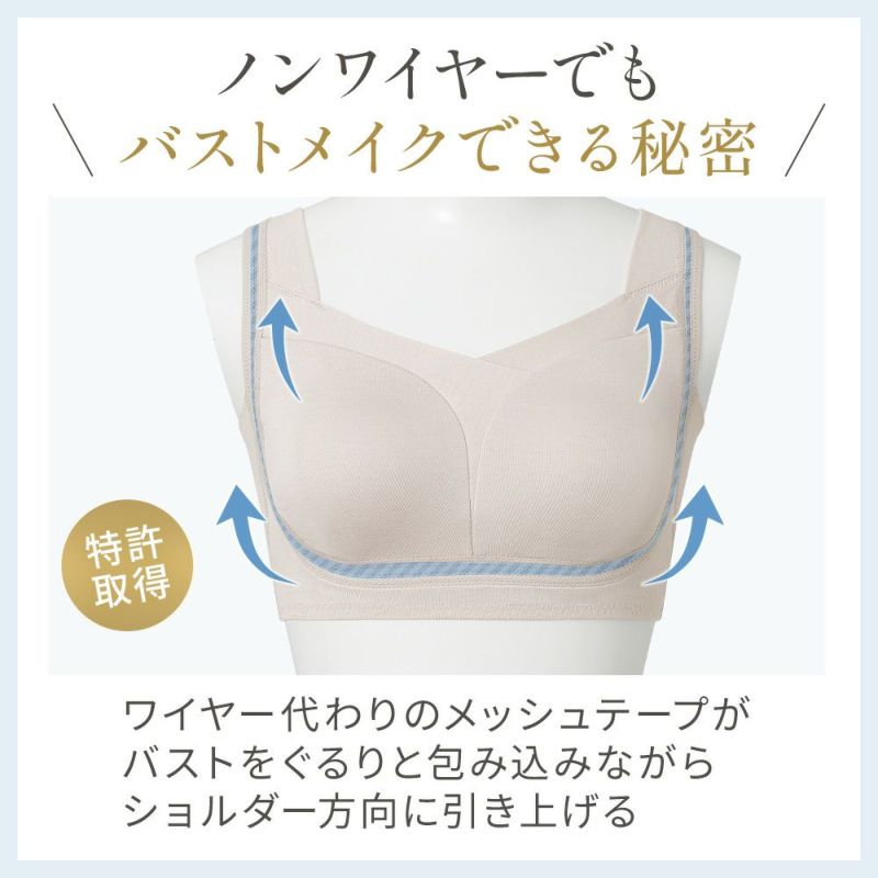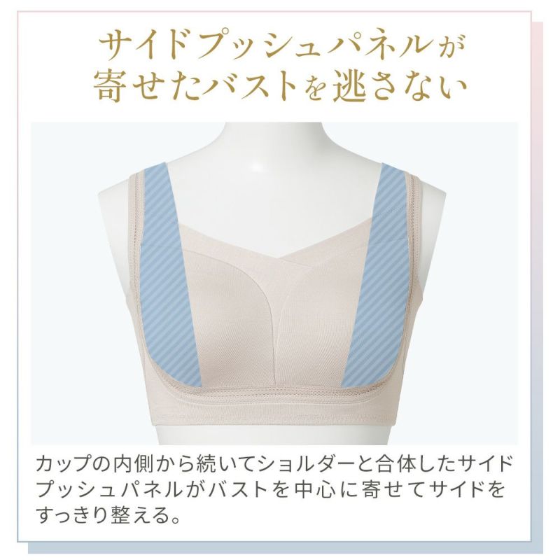 着ていることを忘れるような快適さを実現した補正ブラ。日中はボディメイクの補整ブラとして 夜はバストケア用として、ご希望に合わせた使用ができます。