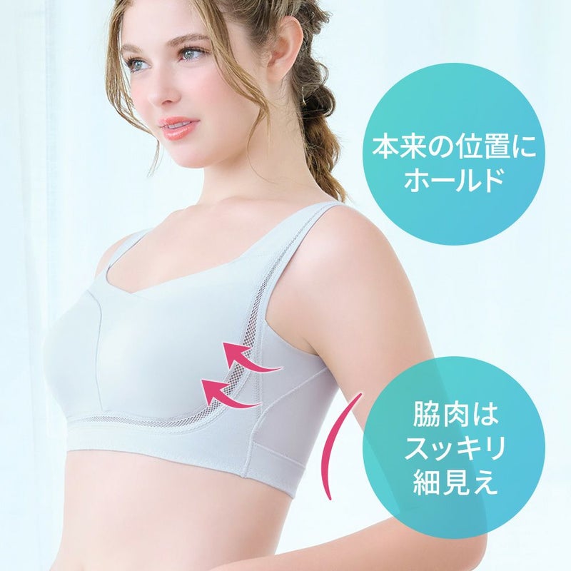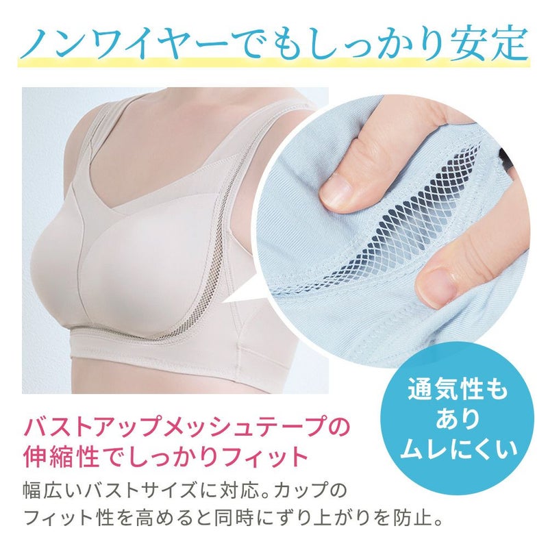 ノンワイヤーなのにバストをしっかり寄せて、キレイなバストラインに整える