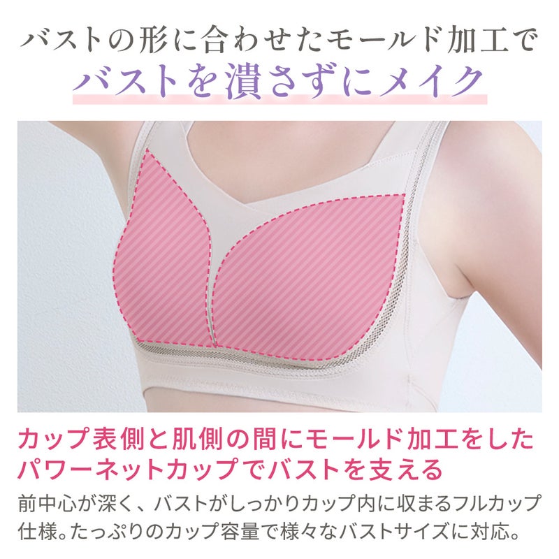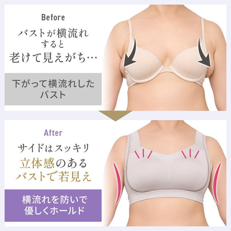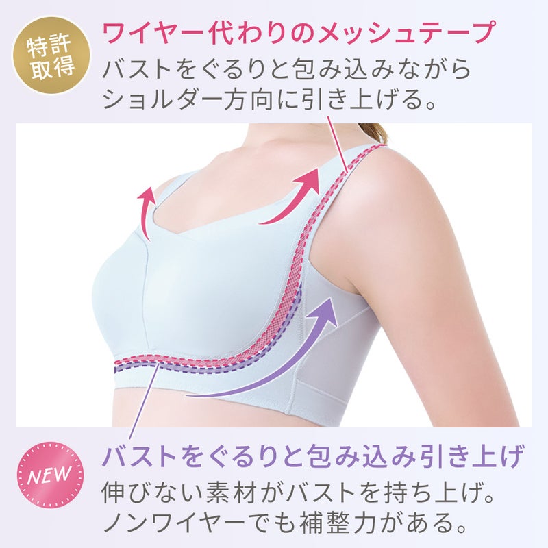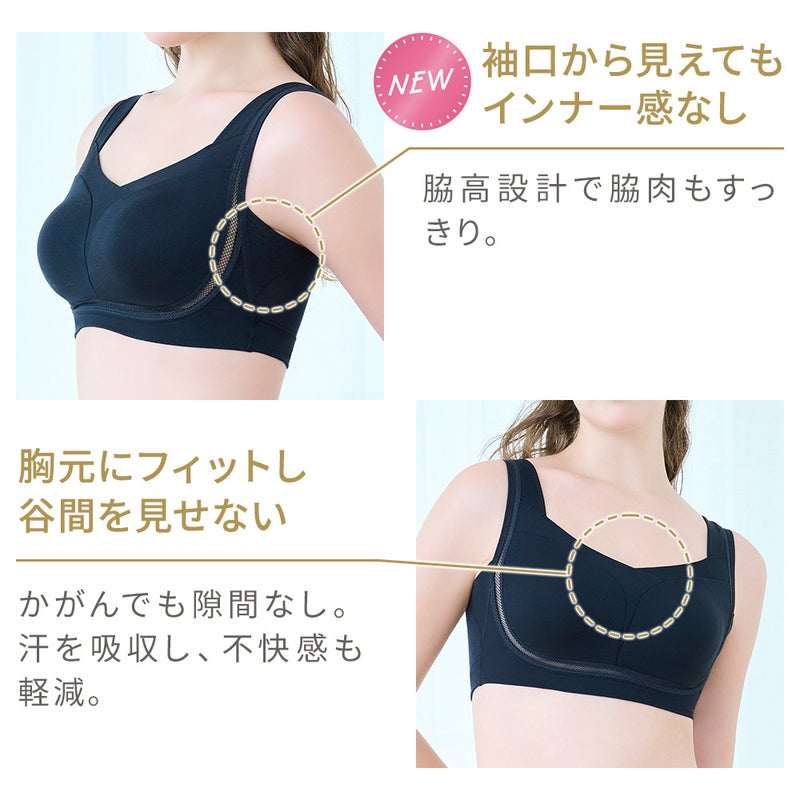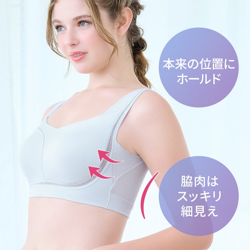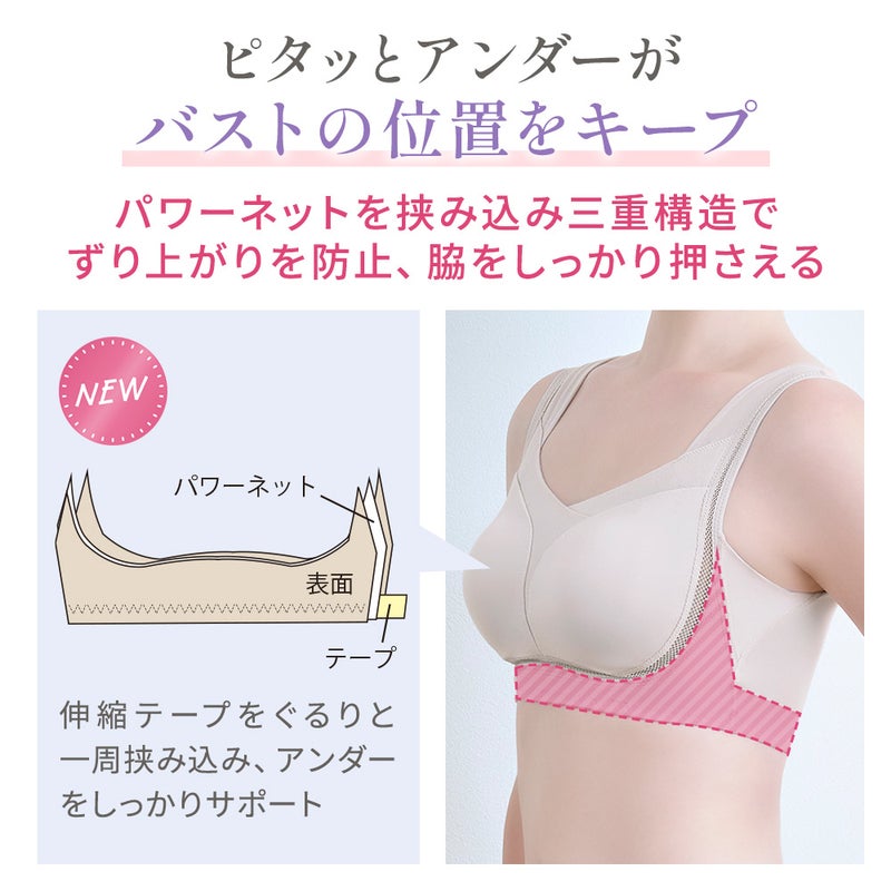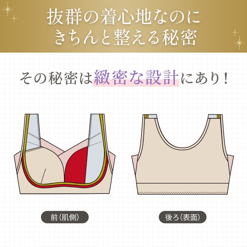 ノンワイヤーなのにバストをしっかり寄せて、キレイなバストラインに整える