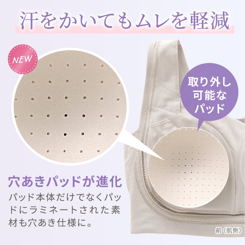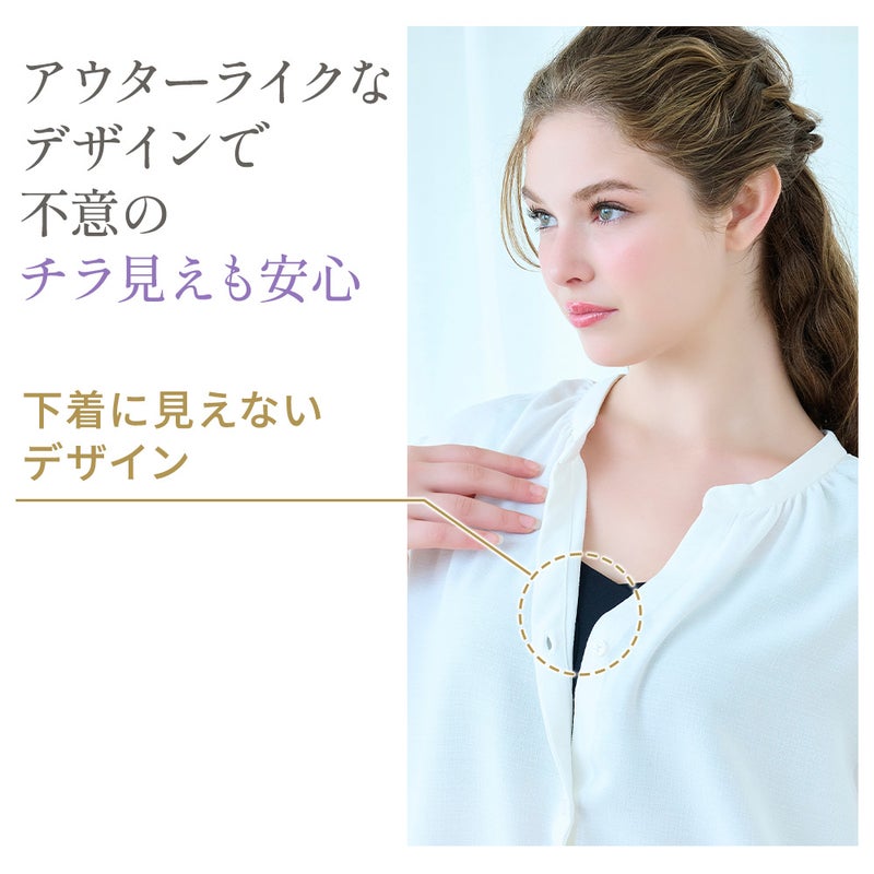 QVC商品名:ゆきねえ とろける肌触りソフトシルク混ライトブラ 大人気の補正下着ブランド「Yukine inc.」から、暑い時季に適した薄手で涼しい補正ノンワイヤーブラが登場。後ろが空いた洋服でも背中部分が薄手で丈は短めのため目立ちにくく夏にぴったりです。締め付けにくいパターンでなめらかな肌触りがバストを優しく包み込みます。 安定感のあるフルカップ仕様で、ブラ前中心が深くバストがしっかりカップ内に収まります。伸縮性があり、様々なバストサイズに対応できます。サイズに合わせた通気性の良い穴あきパッドがついており、取り外しも可能です。 表と肌に触れる部分は、ソフトに伸び、柔らかく体を包み込むシルクレーヨン混ベア天竺生地を使用。天然繊維であるシルクは糸が細くなめらかな肌触りです。 さらに、吸湿性・吸水性・放湿性に優れ、接触冷感機能も備えているので、蒸れなどの不快感を軽減しオールシーズン快適な着心地です。 フラットな縫製仕様になっており、ステッチは表側にすることで肌面に縫い糸はなく、優しい肌当たりです。肩接ぎ線をショルダーポイントからやや後側にずらした設計のため、バッグを掛けて肩に負荷がかかっても痛くなりにくいです。 着ていることを忘れるような快適さを実現した補正ブラ。日中はボディメイクの補整ブラとして 夜はバストケア用として、ご希望に合わせた使用ができます。