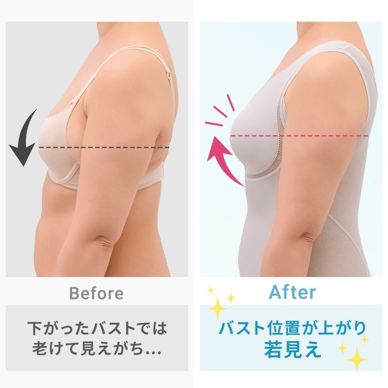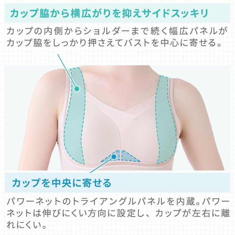 ノンワイヤーなのにバストをしっかり寄せて、キレイなバストラインに整える