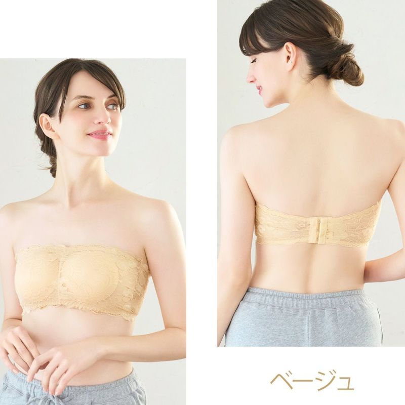 胸元レースが上品で、見えても美しいチューブトップです。 チラ見えを防止し、バストをソフトに包み込みます。