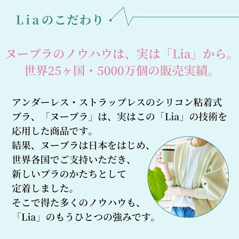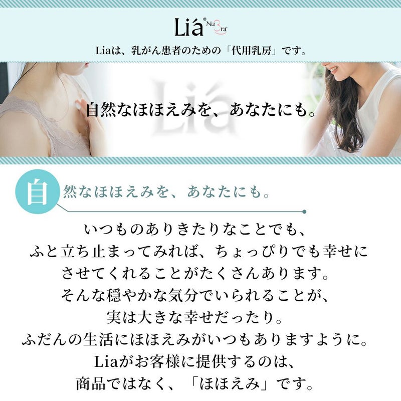シリコン100%の代用乳房「Lia(リア)」。体に自然にフィットし、なだらかなバストラインを作ってくれます。