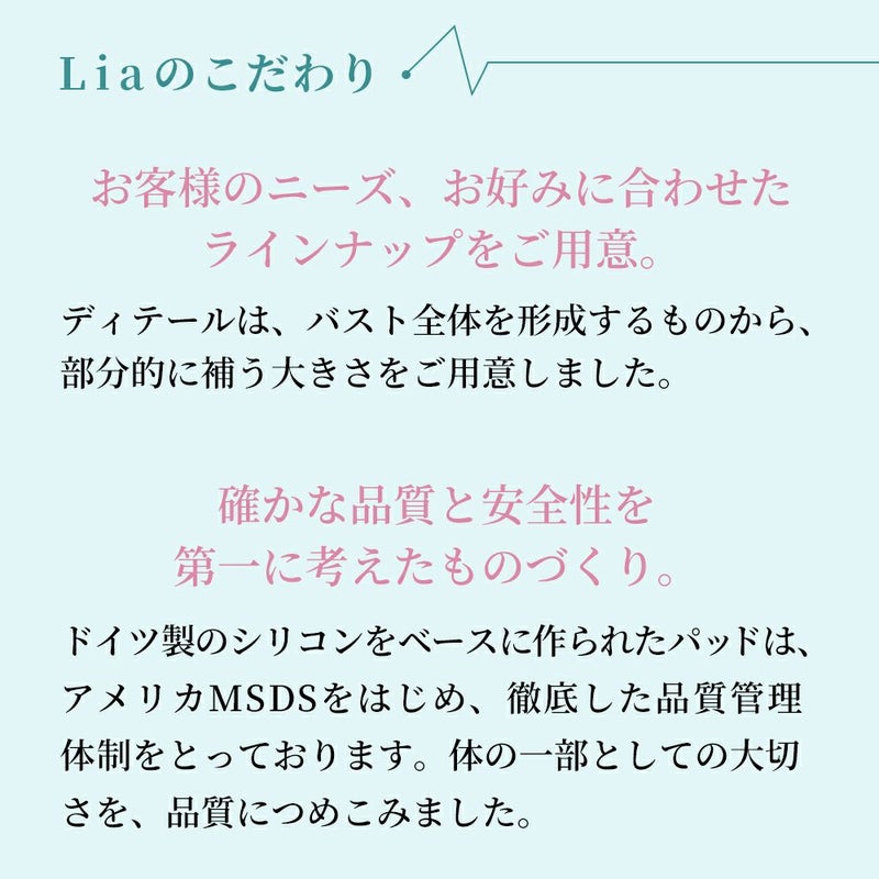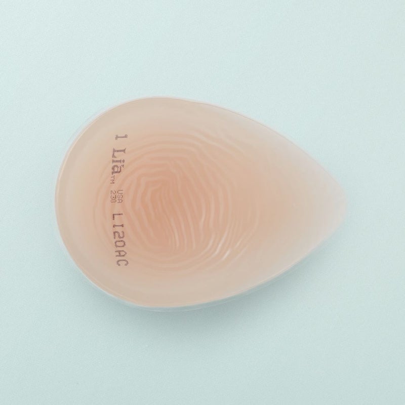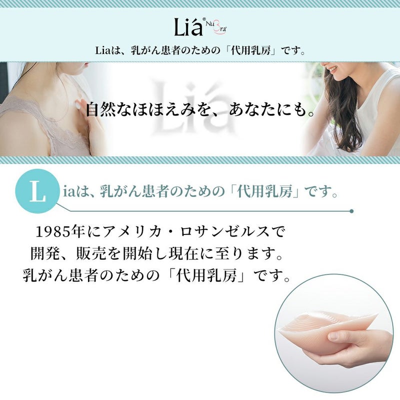シリコン100%の代用乳房「Lia(リア)」。体に自然にフィットし、なだらかなバストラインを作ってくれます。