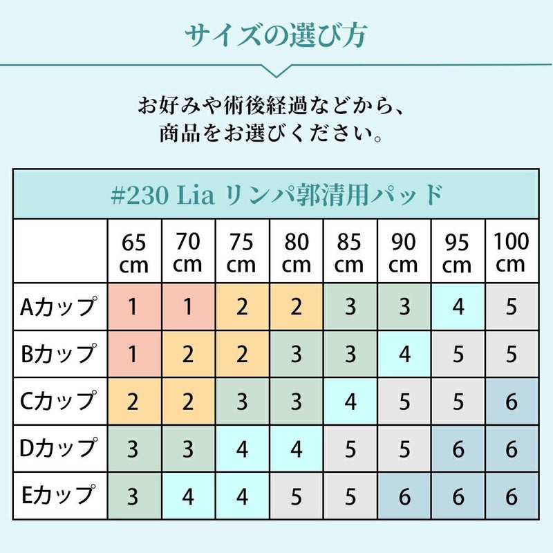 ※サイズ対応表によって決まるサイズは「目安」になります。 下記サイズ表及び、術後状態なども合わせてお選び下さい。
