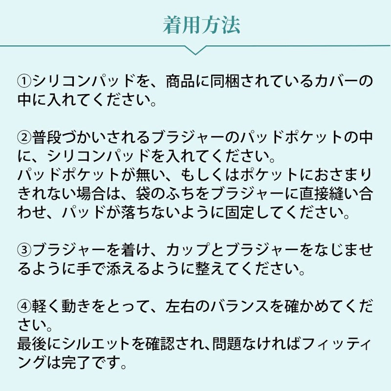 専用のカバーも付属しておりますので、「Lia」をカバーに入れて、普段使いされているブラジャーと合わせてご使用頂けます。