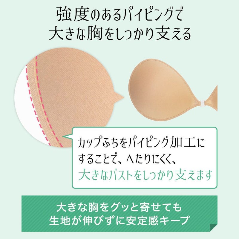 普段G75またはH75で、不自然に出っ張りすぎて服はかっこ悪いし、肩は凝るし・・・をなんとかしたくて恐る恐るヌーブラに挑戦しました。Eサイズをなるべく脇側から装着してアンダーは無視して上目にはると驚くほどコンパクトになりました!大きいサイズだとストラップレスブラも殆ど売っていないのですが、ヌーブラのおかげでキャミソールワンピが着られて本当に嬉しいです。