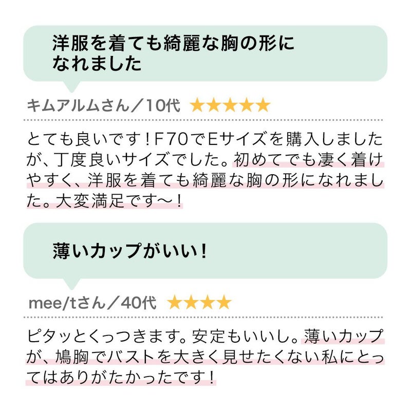 信じられないくらいのフィット感、着けやすさ、つけた時の胸の形、完璧です!