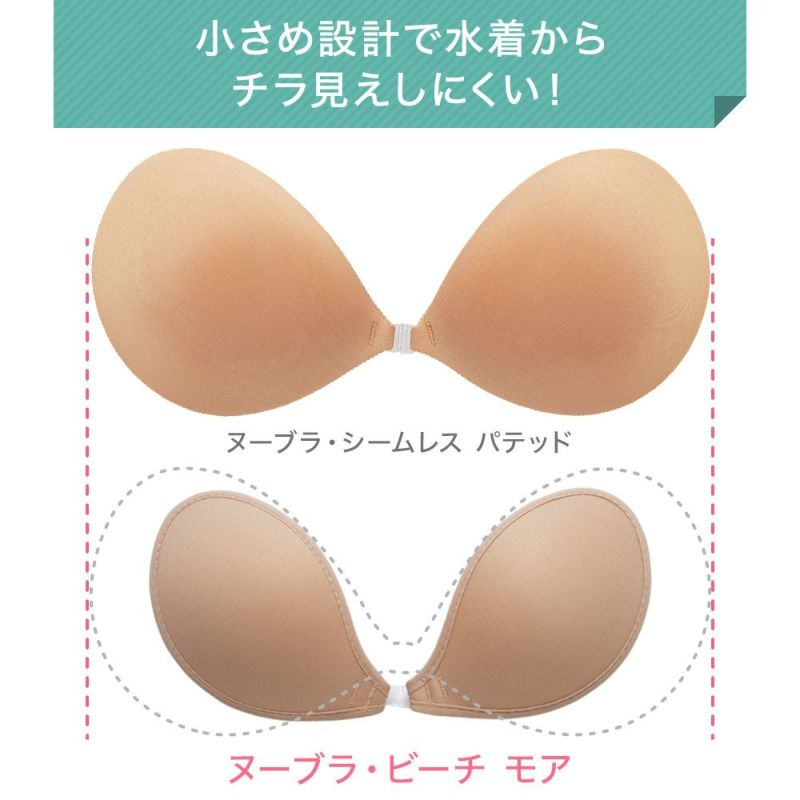 普通のヌーブラに⽐べて、ひとまわり⼩さく作られているので、布⾯積が⼩さい⽔着でもハミ出しにくくなっています。
