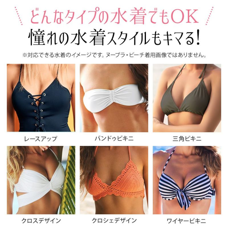 ヌーブラなら水着の力をかりなくてもバストを寄せることができ、これだけでバストメイクが完成するのでどんな水着も安定して着こなせます。直接貼るから、パッドポケットがない水着もOK。