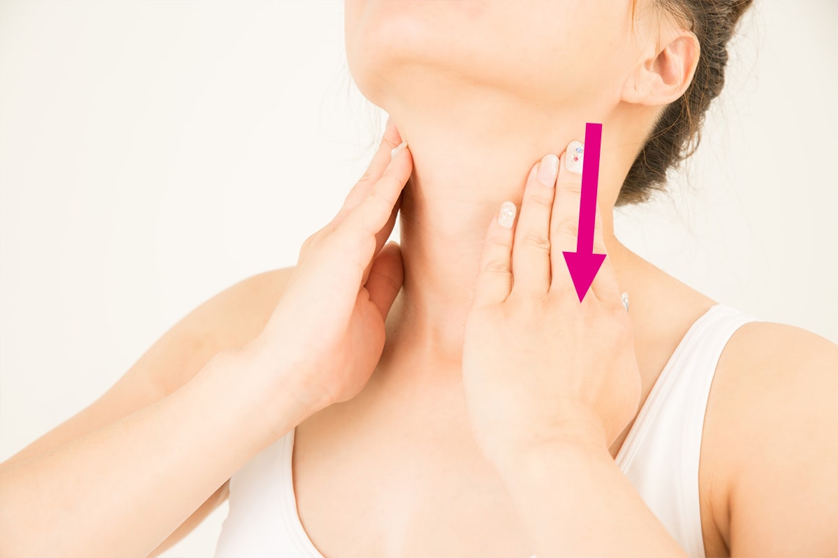 2.次に耳の下から首筋に沿ってリンパを流します。
