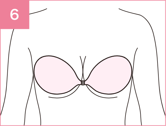 - 反らせたカップを戻しつつ、バストを持ち上げるようにしながらヌーブラ全体を貼りつけます。