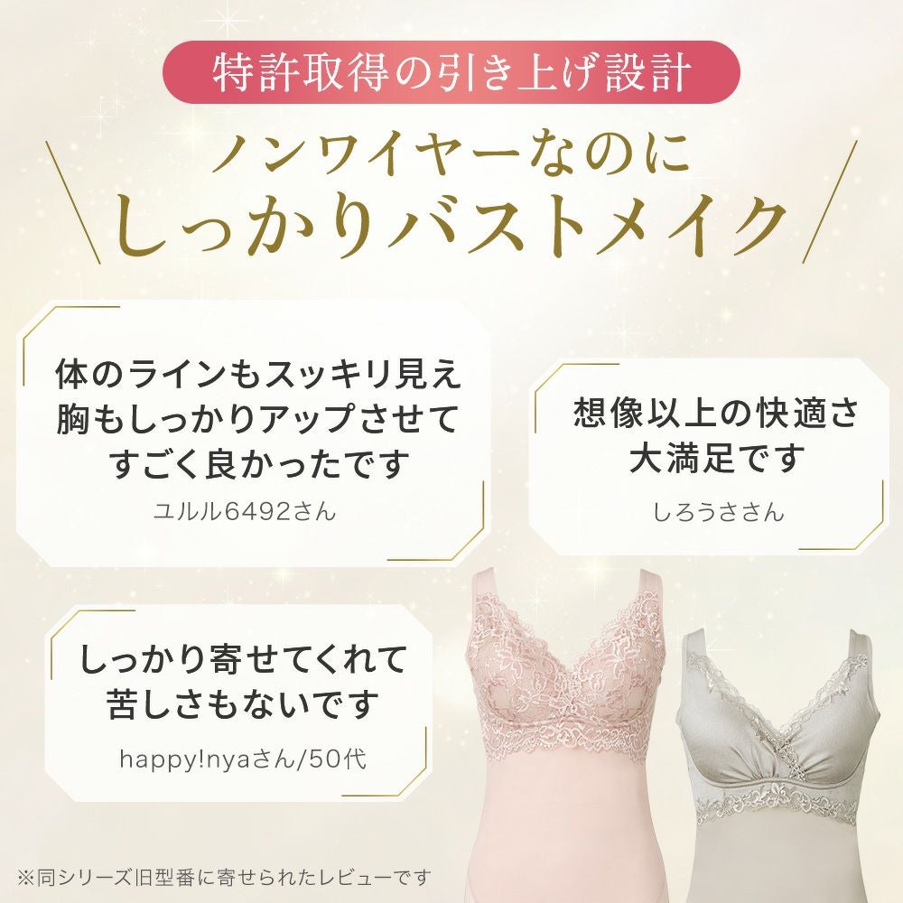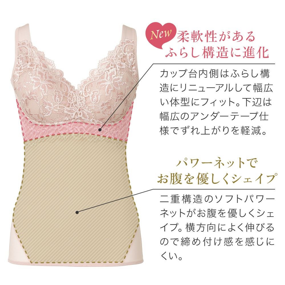他の画像を見る ビューティフルレースハートフルカップブラキャミ25 ノンワイヤー SALE 定価 ¥ 8,140 (税込) 当店価格 ¥ 5,280 税込 自然で丸みのあるバストを作る補正ノンワイヤー補正ブラキャミ。デザイン性が高いシリーズでレースは選べる2タイプ。 お気に入りに登録する