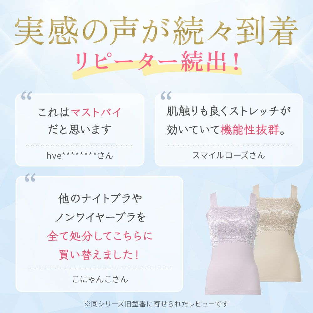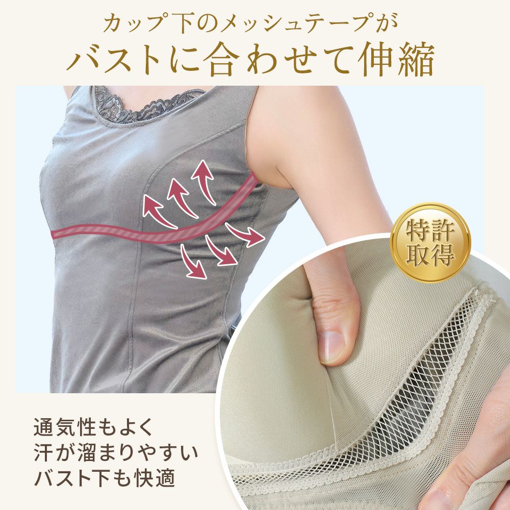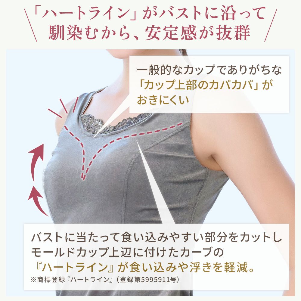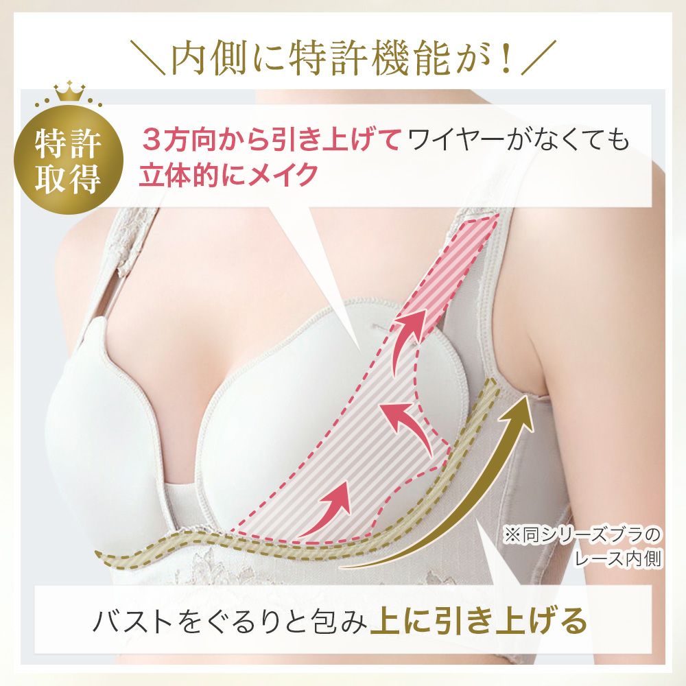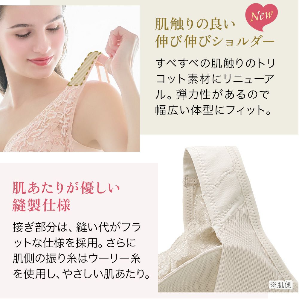 他の画像を見る 綿混キャッチャーカップレースブラキャミ25 NEW ノンワイヤー SALE 定価 ¥ 7,480 (税込) 当店価格 ¥ 5,060 税込 特許取得のキャッチャーカップが美胸メイクするノンワイヤー補正ブラキャミです。快適な着心地とほどよい補正力で自然できれいなボディラインに整えます。 お気に入りに登録する