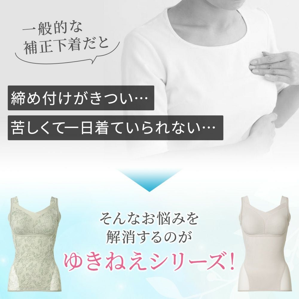 他の画像を見る ゆきねえとろりソフトシルク混ブラキャミ25 ノンワイヤー SALE 定価 ¥ 5,720 (税込) 当店価格 ¥ 5,060 税込 大人気の補正下着ブランド「Yukine inc.」から、シルク混生地を使用した「ゆきねえとろり」シリーズ。ゆきねえ史上最も気持ちいい肌触りのノンワイヤー補正ブラキャミです。 お気に入りに登録する