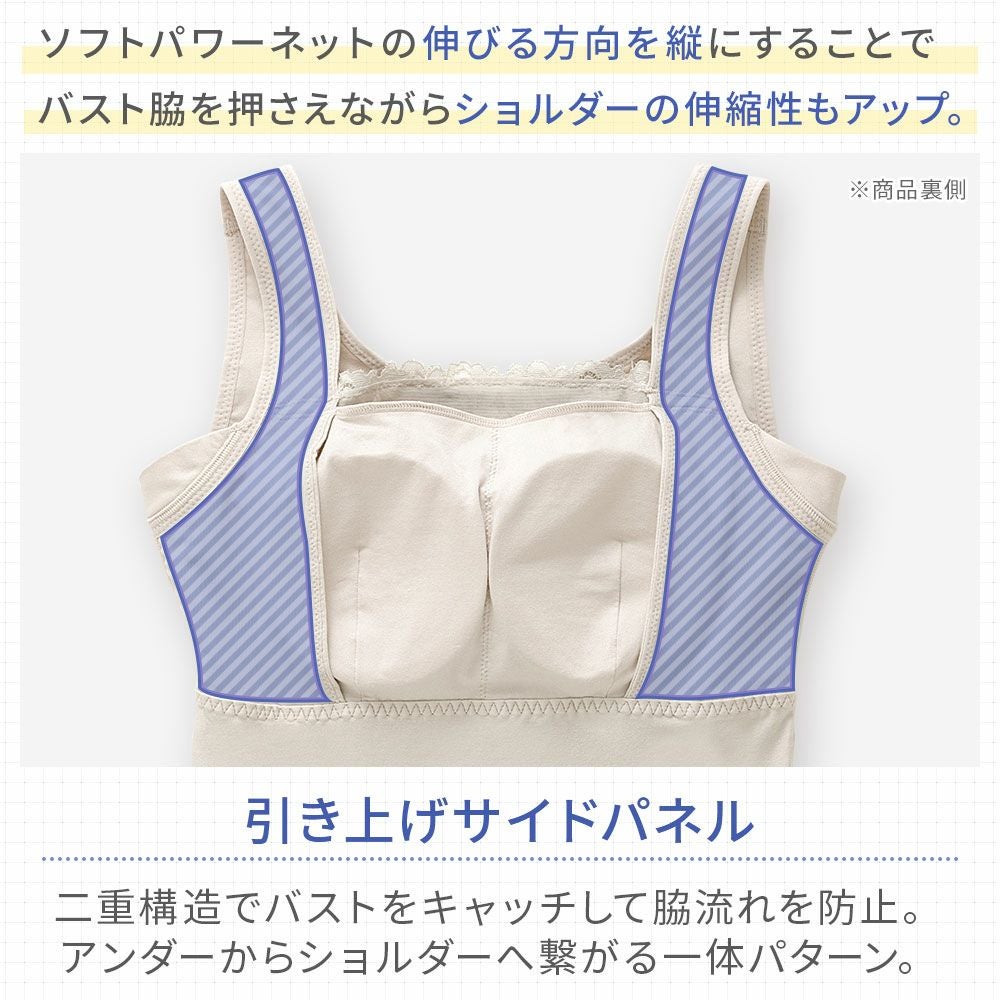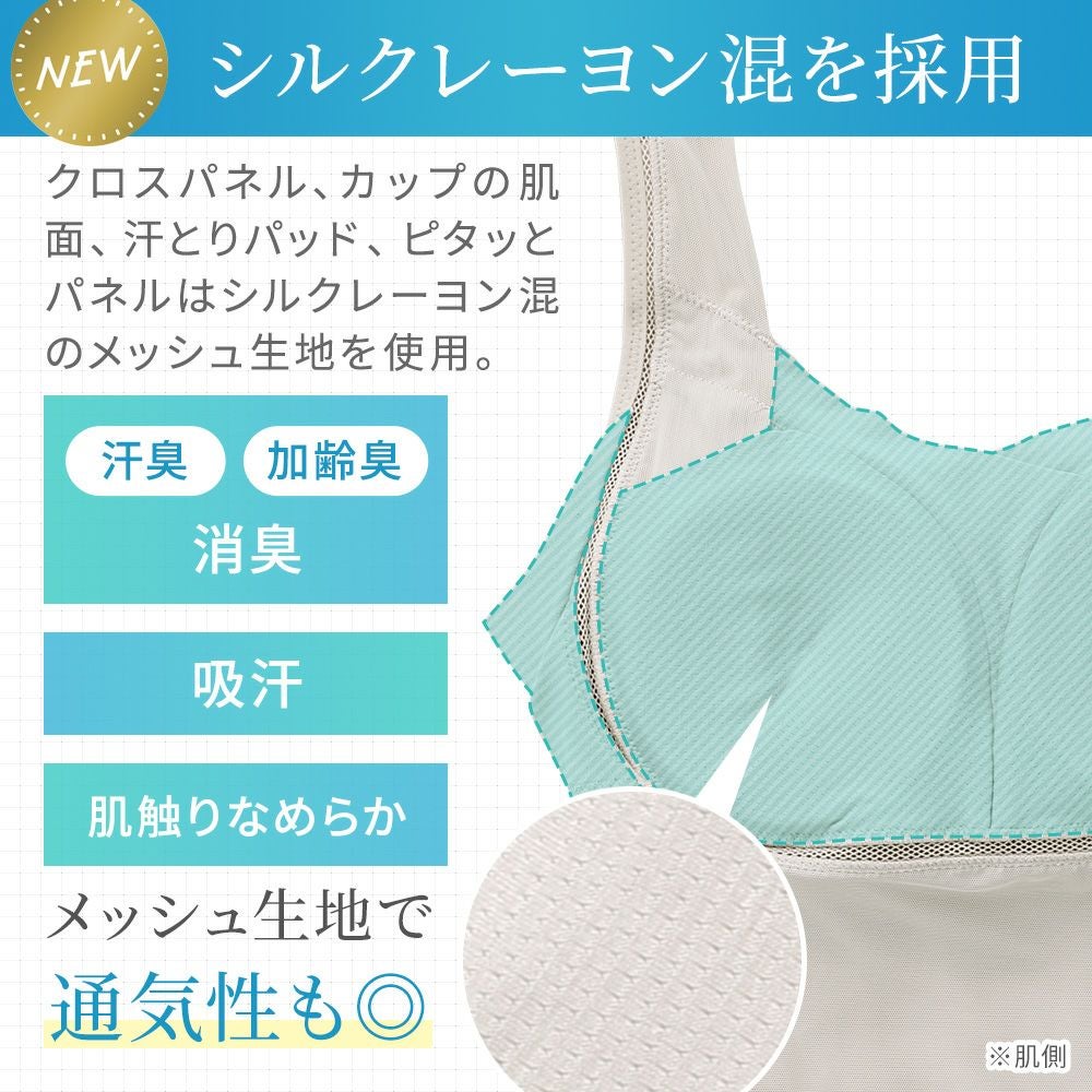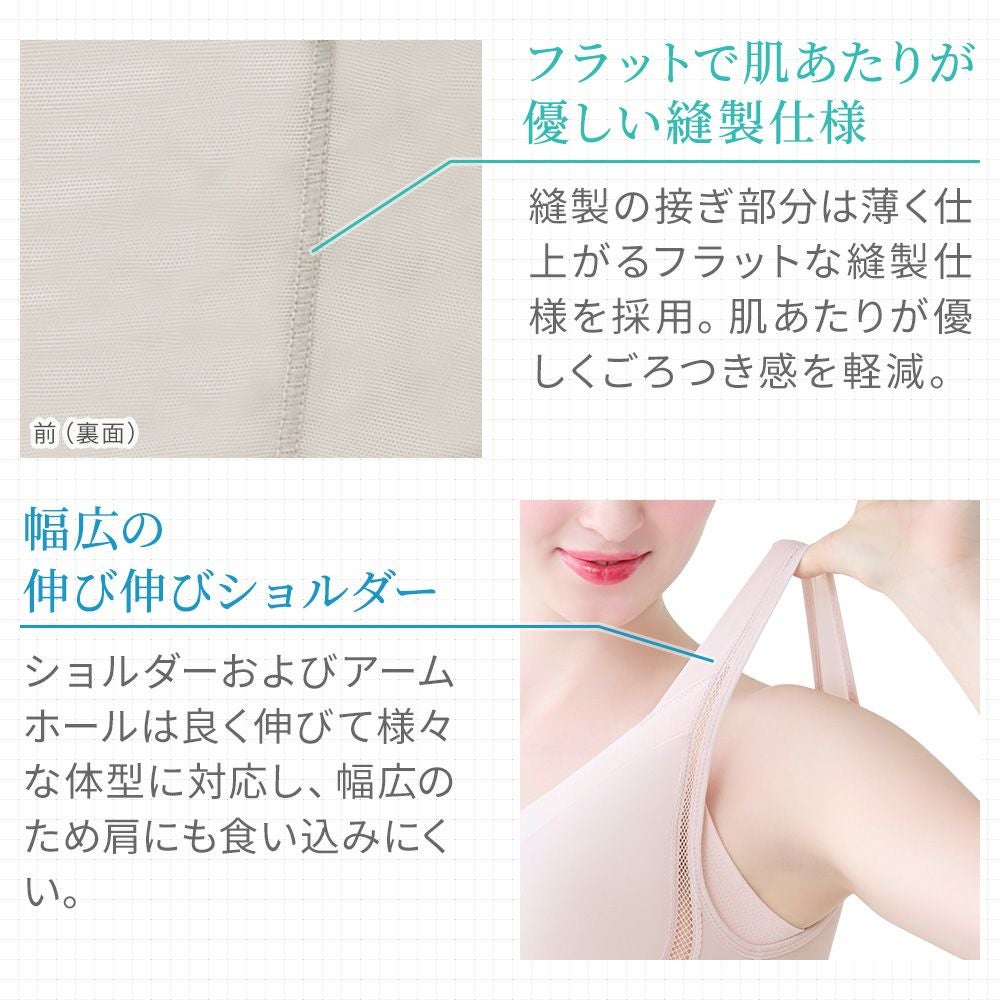 他の画像を見る 綿さらタッチ!ナチュラルフィットブラキャミ25 ノンワイヤー SALE 定価 ¥ 8,030 (税込) 当店価格 ¥ 4,015 税込 汗ばむ季節にサラリとした快適な着心地をキープするノンワイヤー補正ブラキャミです。ブラデリス初、汗を吸うパワーネット新登場! お気に入りに登録する