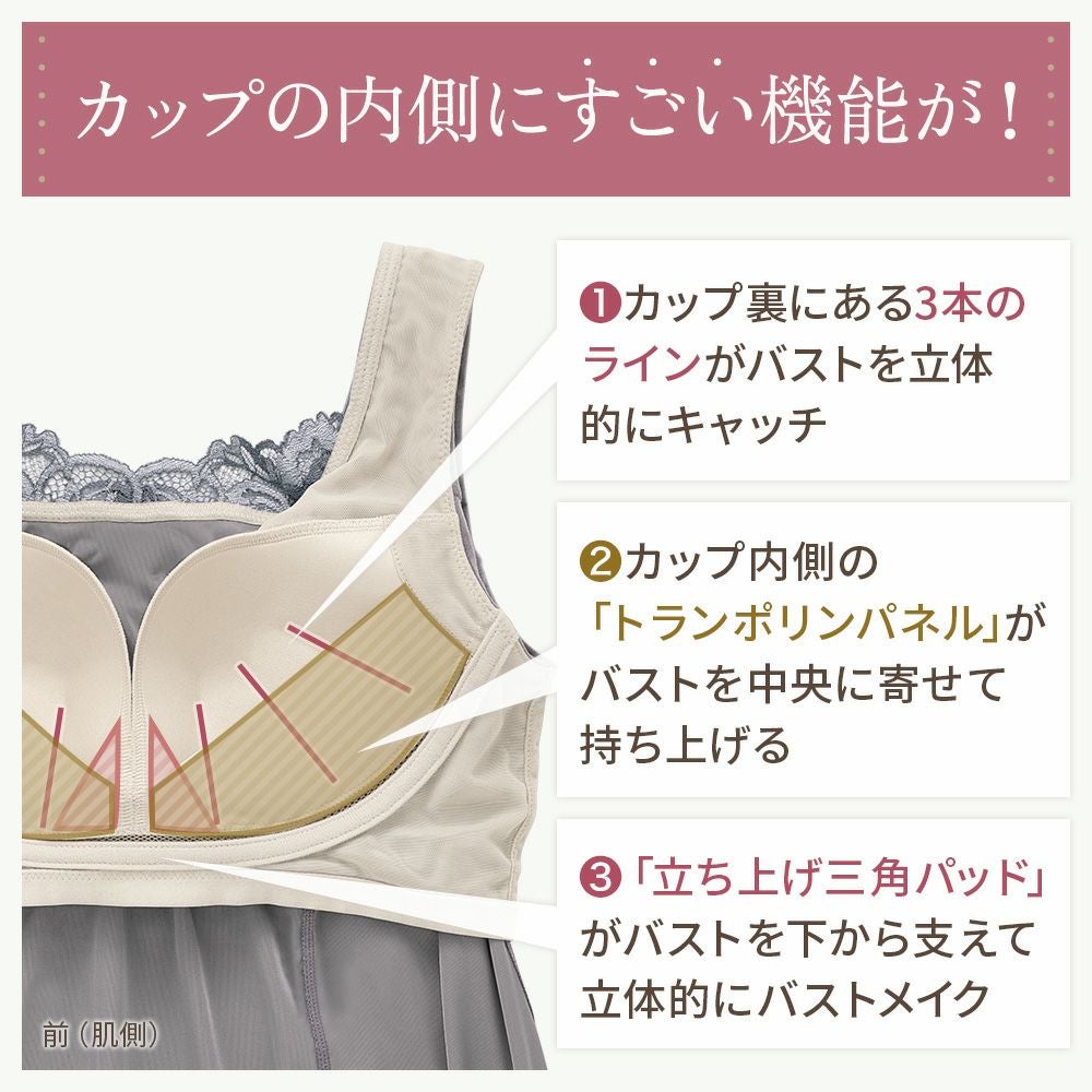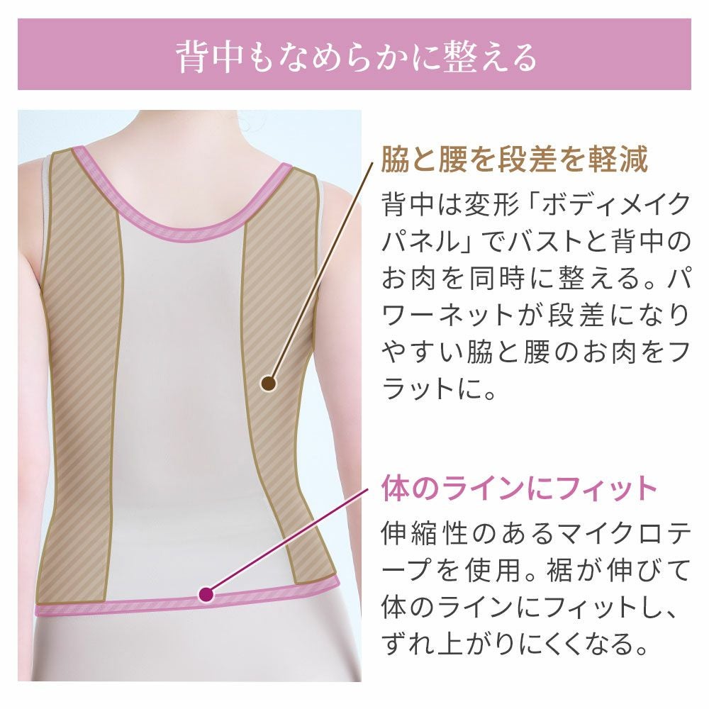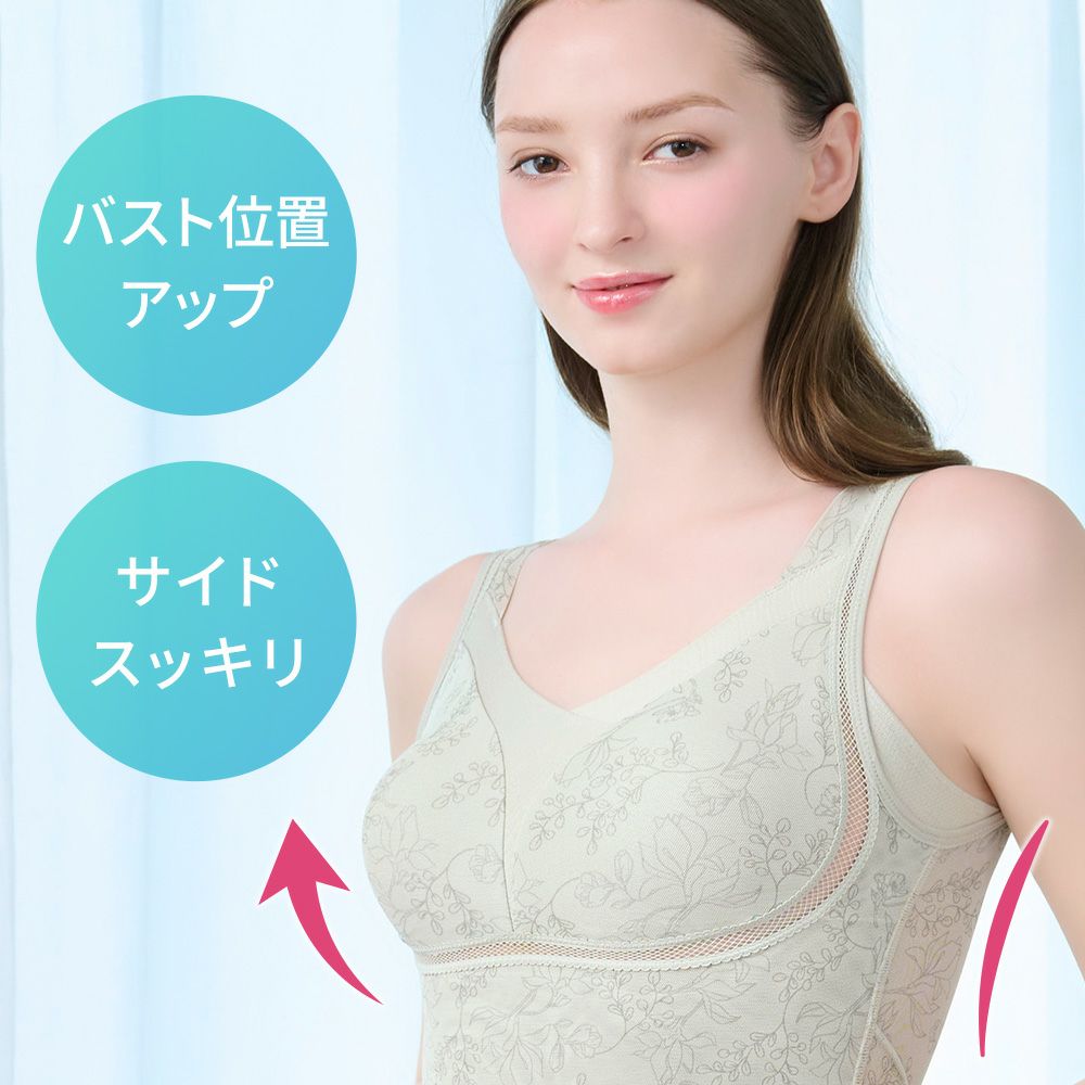 他の画像を見る ハッピーバストアップブラキャミソール25 ノンワイヤー SALE 定価 ¥ 6,600 (税込) 当店価格 ¥ 4,950 税込 柔らかな着心地でバストラインを美しく整える補正ブラキャミです。「おしりPラインヒップラップショーツ25」とセットアップにおすすめです。 お気に入りに登録する