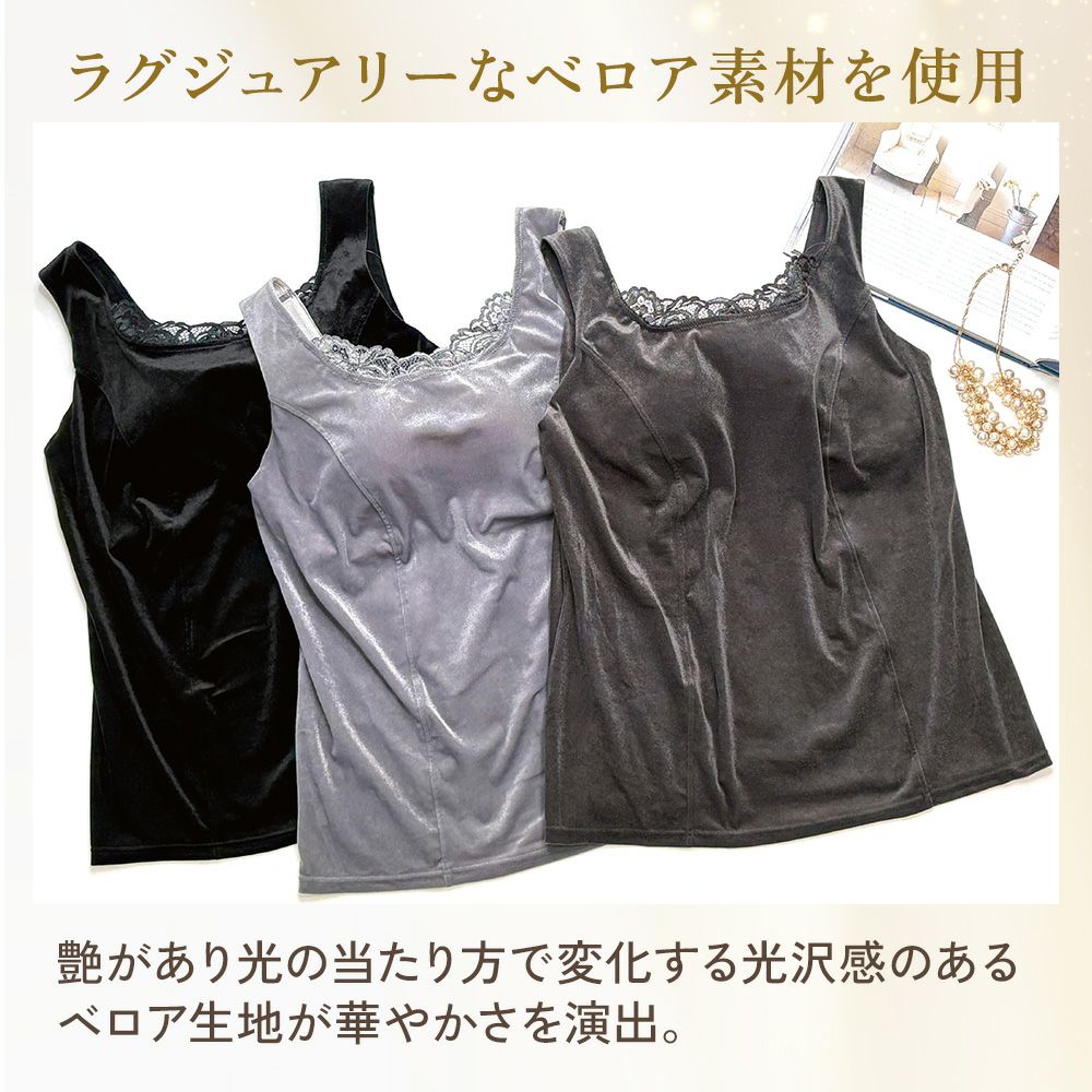 他の画像を見る シャイニーベロアブラキャミ25 NEW ノンワイヤー SALE 定価 ¥ 6,600 (税込) 当店価格 ¥ 6,050 税込 ラグジュアリーなストレッチベロア素材を使用した補正ブラキャミです。カットソー感覚でインナー使いにもおすすめです。 お気に入りに登録する