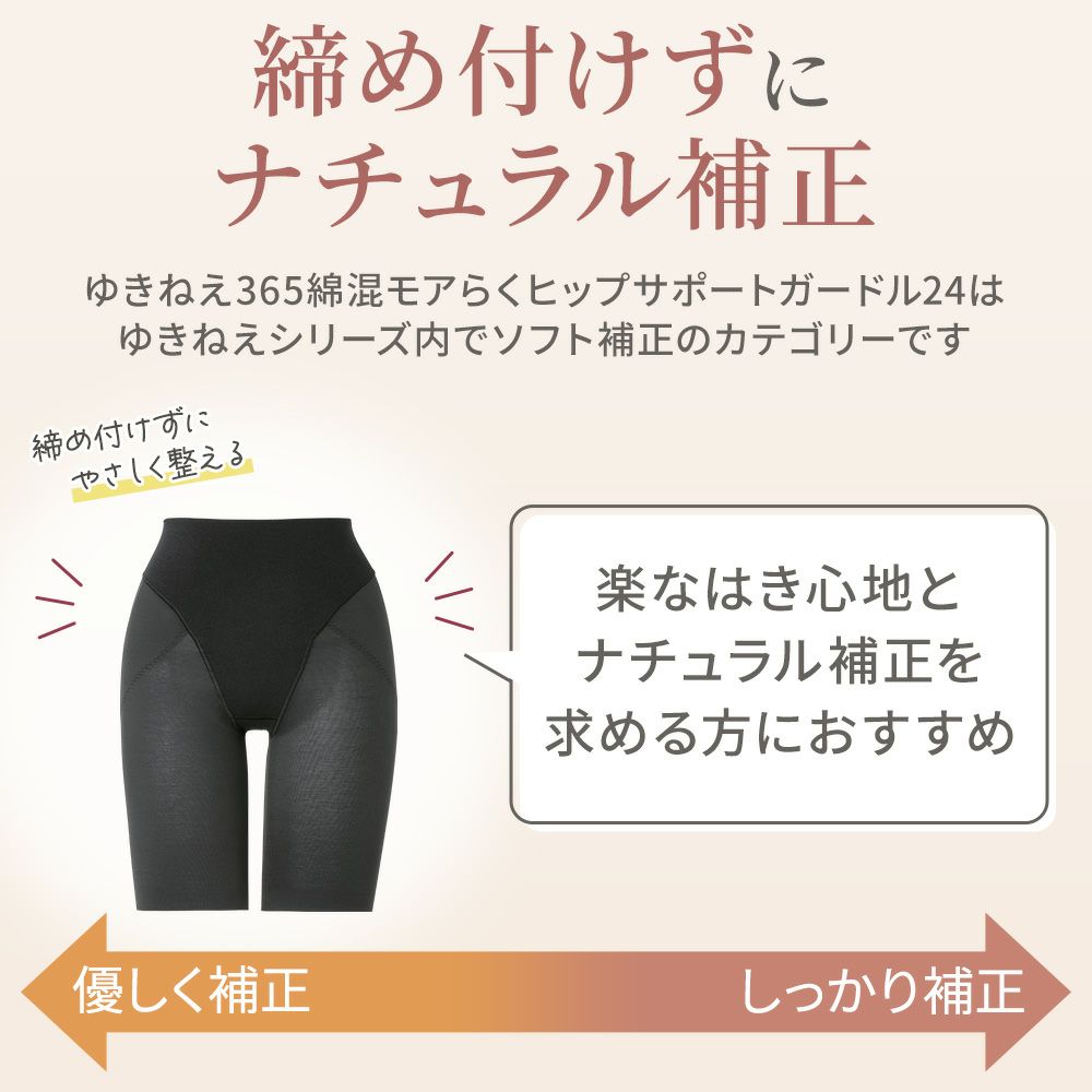 他の画像を見る 綿混楽々ソフトガードル24 SALE 定価 ¥ 4,950 (税込) 当店価格 ¥ 2,970 税込 薄手で柔らかな生地と、ストレスフリーなはき心地が快適な補正ガードルです。伸縮性が高く一枚穿きもできるのでガードルが苦手な方にもおすすめです。 お気に入りに登録する
