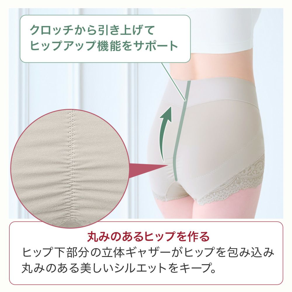 他の画像を見る ハートのお尻に格上げショーツ24 SALE 定価 ¥ 3,190 (税込) 当店価格 ¥ 1,931 税込 流れたお尻のお肉を集めて、高さのある上向きヒップが叶う補正ショーツです。おへそまで包みこむハイウエスト仕様で安定感のあるはき心地です。 お気に入りに登録する