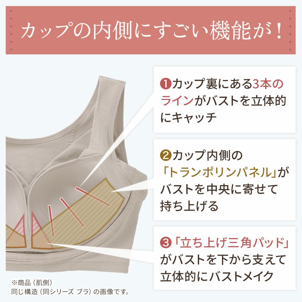 他の画像を見る 綿混ストレッチハイブリッドハートカップブラキャミ25【送料無料】 ノンワイヤー 送料無料 SALE 定価 ¥ 8,030 (税込) 当店価格 ¥ 5,280 税込 綿混素材が楽な着心地でボディラインを整えるノンワイヤー補正ブラキャミです。特許取得のパネル設計とハートカップがふっくら美胸を実現します。 お気に入りに登録する
