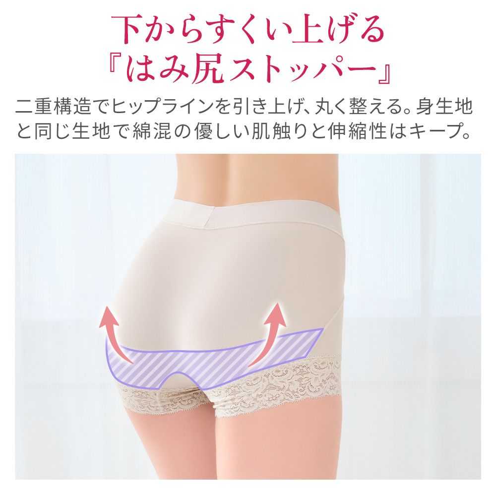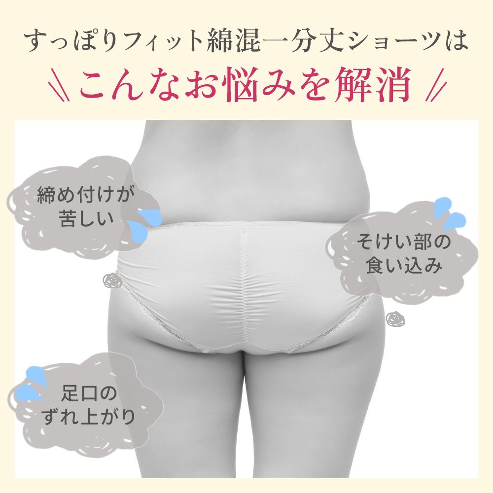 他の画像を見る 綿混フィットレースショーツ24 SALE 定価 ¥ 2,750 (税込) 当店価格 ¥ 2,200 税込 気になるお腹周りの浮き輪肉もすっぽり包み込む一分丈補正ショーツです。ヒップと太ももの境目を作りヒップラインを美しく演出します。 お気に入りに登録する