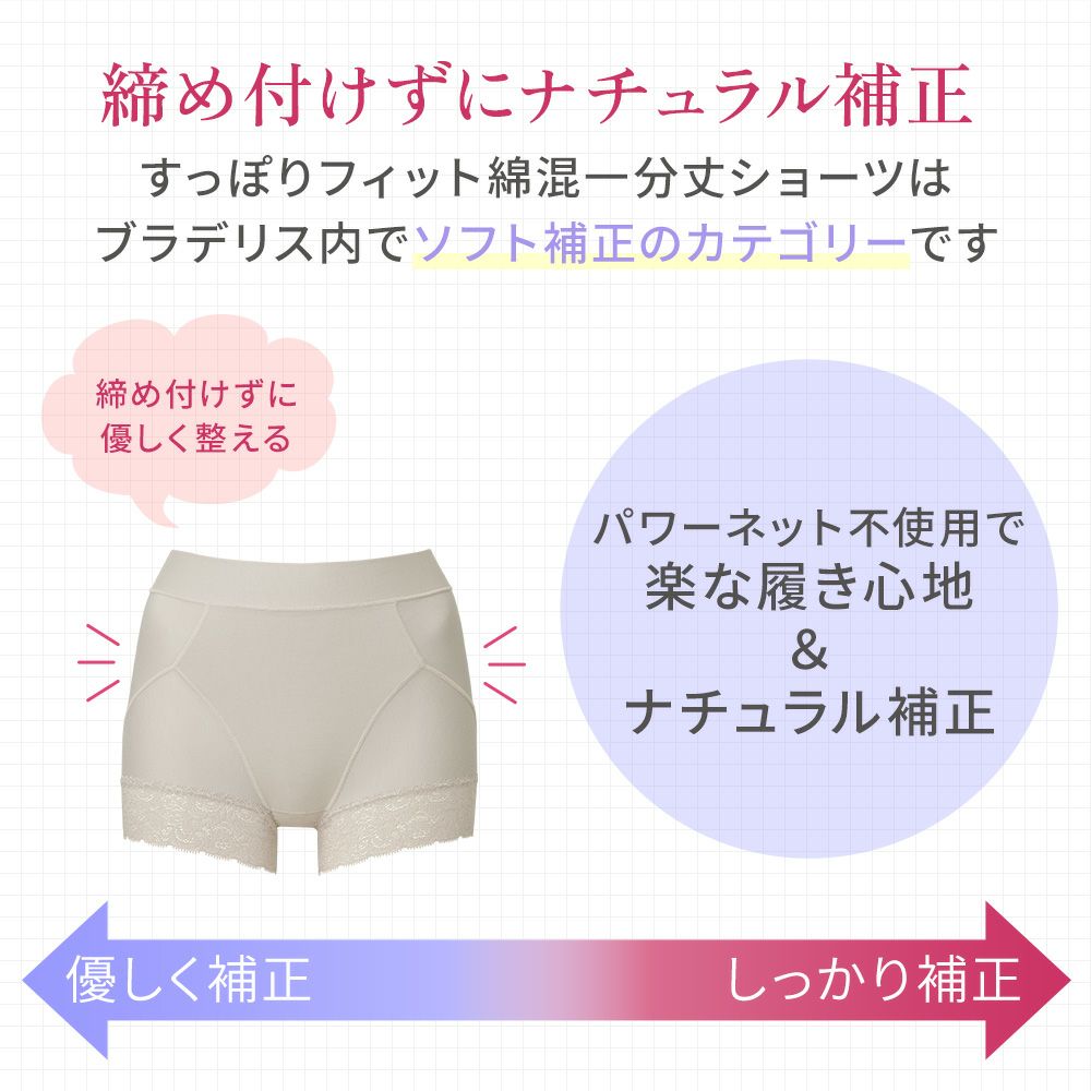 他の画像を見る すっぽりフィット綿混一分丈ショーツ25 NEW SALE 定価 ¥ 3,190 (税込) 当店価格 ¥ 1,650 税込 オリジナルの立体パターンでヒップをすっぽりと包み込む、一分丈の補正ショーツです。パワーネットを使わず、ナチュラルなヒップメイクが叶います。 お気に入りに登録する